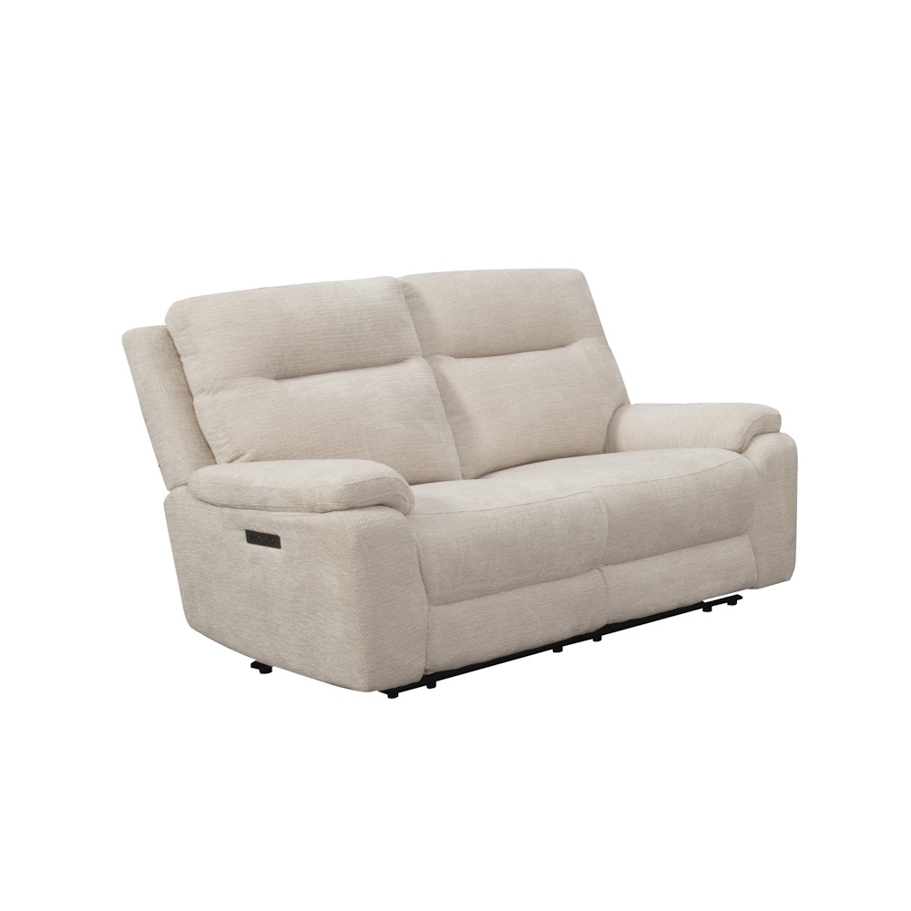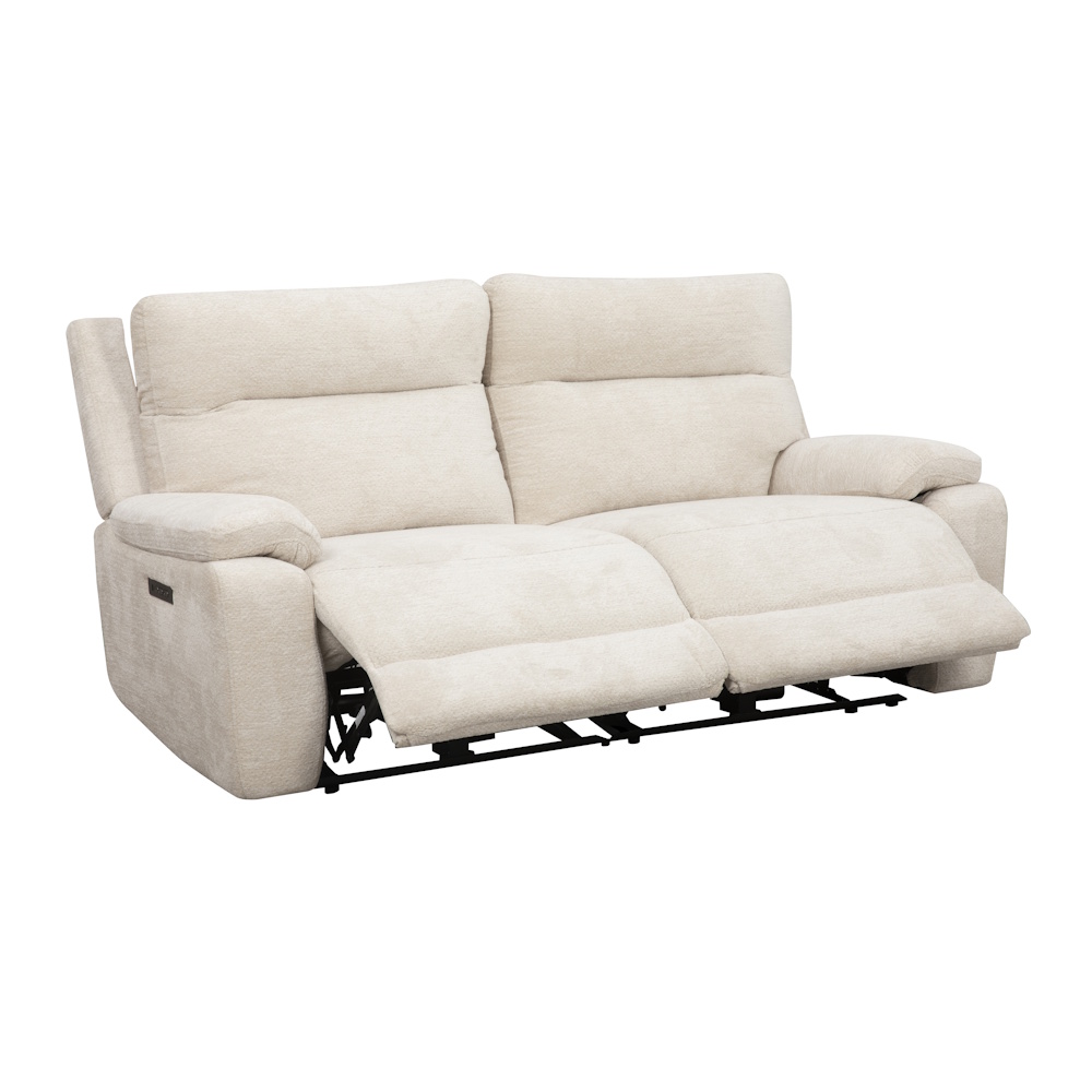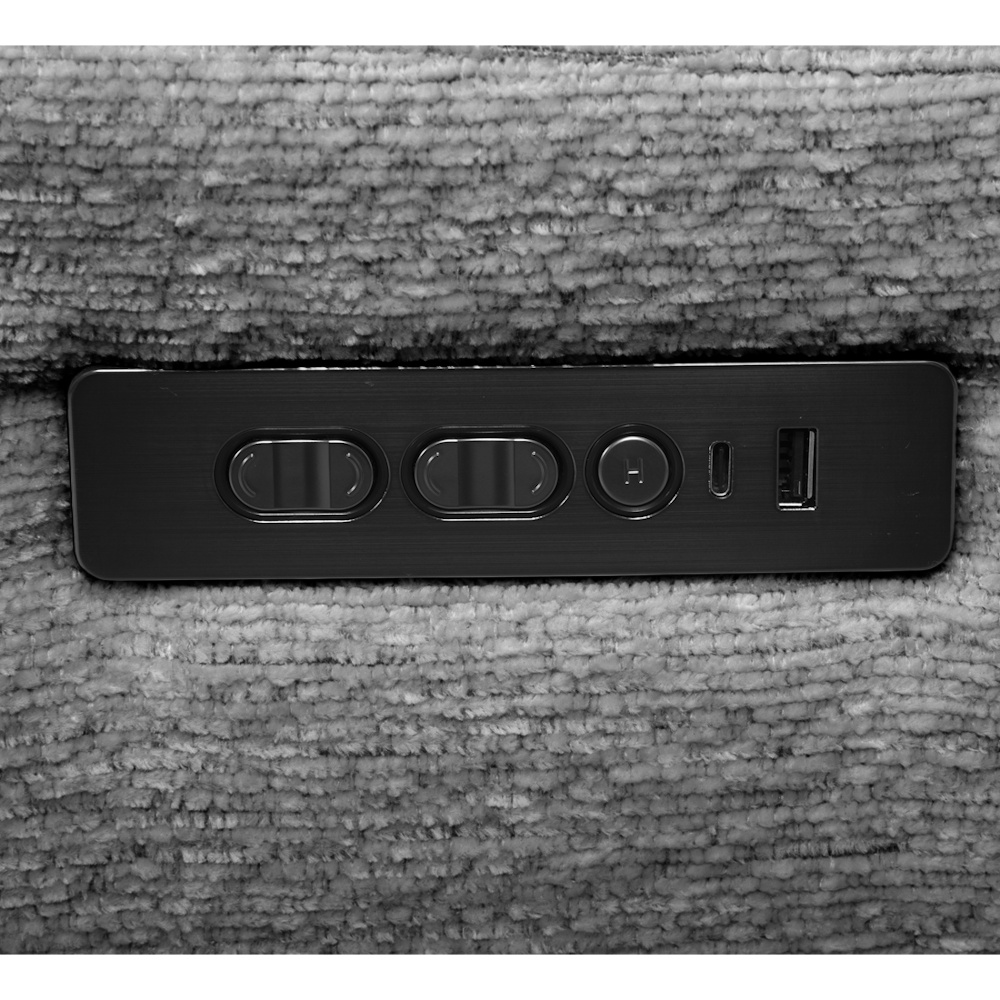 Sofá con estructura de madera de pino y partículas, suspensión de cincha elástica y muelle zig-zag de gran resistencia, relleno de fibra y espuma de poliuretano con densidad HR-35 kg., tapizado en tela de alta calidad con proceso de cosido computerizado. Dispone de 2 motores independientes en cada módulo para regular cabecero y relax. Incluye en las botoneras exteriores puertos USB y mico USB.